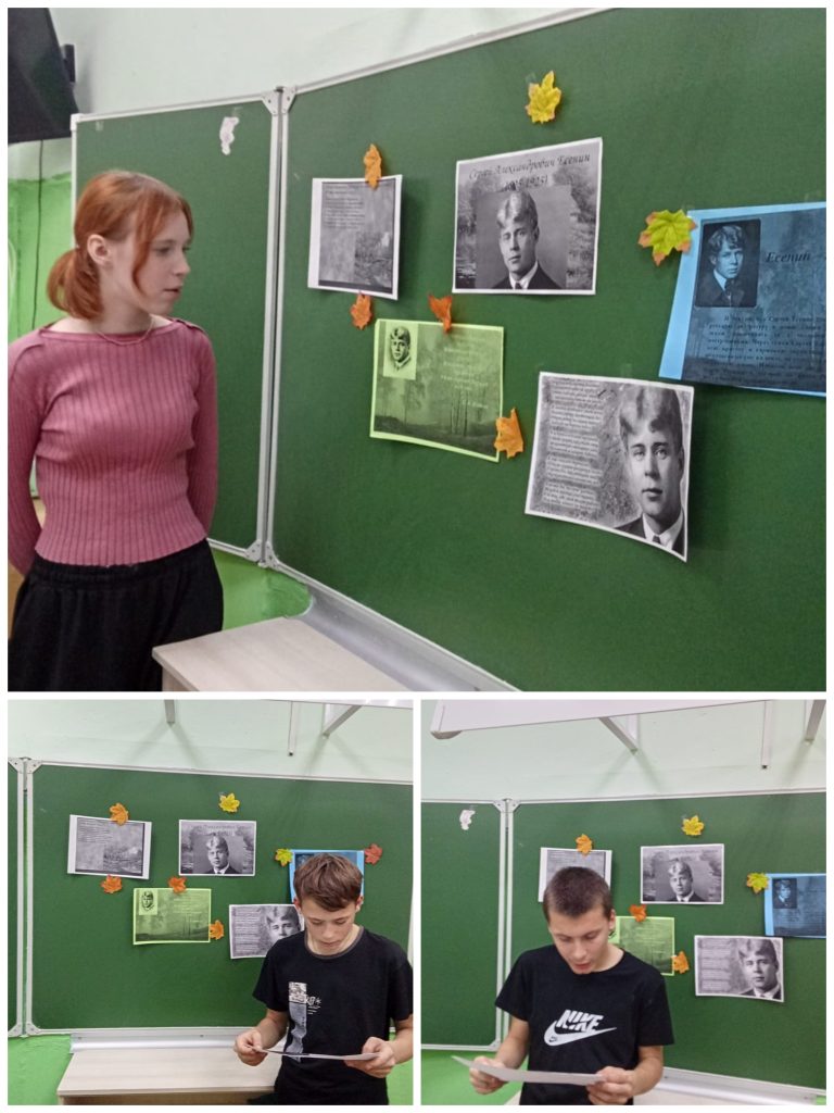 Воспитатель Балаева С. Е. провела литературную гостиную под названием «Есенин — голос осени», на которой воспитанники 7 класса погрузились в мир стихов Сергея Александровича Есенина о природе. Ребята услышали захватывающие истории о жизни поэта и познакомились с его лучшими произведениями. Семиклассники с удовольствием читали стихи Есенина о родном крае, природе, России. А потом по мотивам стихов изготовили поделки.