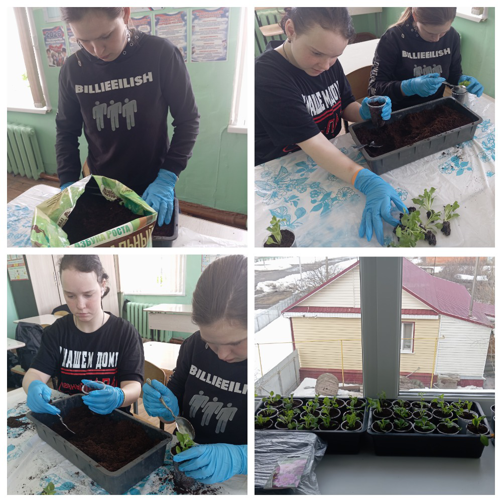 С наступлением весны учащиеся нашей школы традиционно начинают сажать рассаду цветов. В основном, сажают бархатцы, циннии, астры, и, конечно, петунии, потому что все эти цветы считаются самыми неприхотливыми и в то же время красивыми растениями, которые хорошо произрастают в нашей местности. Сегодня на уроке сельскохозяйственного труда, под руководством учителя Пахомовой А.А. , старшеклассники распикировали всходы петунии.  Такие уроки не только расширяют знания, но и формируют умение работать в коллективе. А самое главное, что учащиеся получают опыт. И уже в начале лета, эти цветы будут радовать своей красотой!