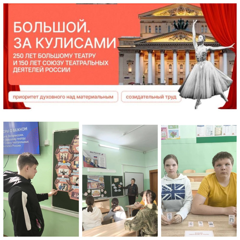 23 марта во всех классах школы проведены занятия «Разговоры о важном» по теме «Большой. За кулисами. 250 лет Большому театру и 150 лет Союзу театральных деятелей России». Ребята познакомились с историей Большого театра, посмотрели видеофильм и поговорили о том, что такое спектакль. Ребята узнали, что театр не раз переживал тяжёлые испытания, включая пожары и разрушения, но каждый раз возрождался благодаря людям, для которых искусство имеет особую ценность. Особое внимание было уделено тому, что театр — это не только сцена и артисты, но и огромная команда специалистов: режиссёры, художники, костюмеры, осветители, звукорежиссёры и многие другие. Именно их совместный труд создаёт настоящее сценическое искусство. Старшеклассники обсуждали, почему театр называют «живым искусством», как он помогает человеку лучше понять себя и окружающих, а также почему духовные ценности играют важную роль в жизни общества. Для младших школьников занятие прошло в формате знакомства с миром театра: они узнали о различных видах театра, театральных профессиях и правилах поведения зрителя, а также о том, как создаётся спектакль.