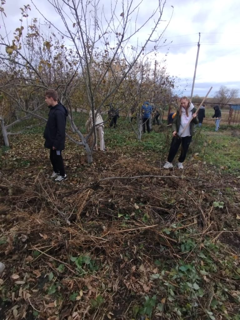 Ребята 8 и 9 классов, под руководством воспитателей, дружно работали в саду, подготавливая сад к зиме. Они собрали опавшие листья, сухую траву и окопали яблони. Яблоневый сад готов к зимовке.